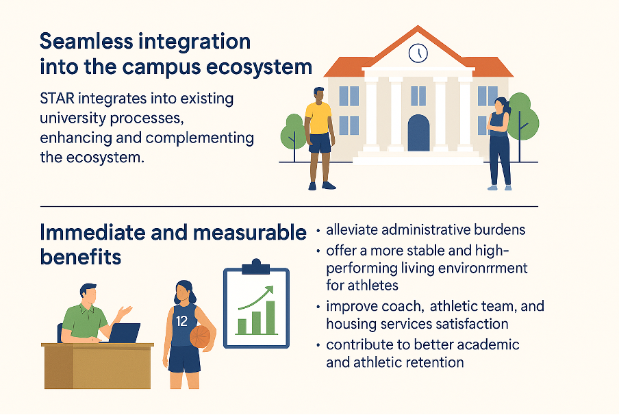STAR works with universities, athletic departments, and housing services to provide a modern, flexible, and turnkey solution designed to enhance quality of life, performance, and student-athlete retention.